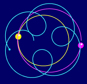 Simpel, maar erg verslavend voor de popubèta’s onder ons: een orbit-simulator. (Is er een Nederlands woord voor ‘orbit’? Ik geloof het niet.) Oftewel: hang een paar planeten in het luchtledige, geef ze een slinger en laat Newton* het verdere werk doen. Zo kinderlijk eenvoudig werkt een zonnestelstel nou. Maar zet uw instellingen wel goed, anders vliegen uw planeten tegen elkaar stuk, of met een rotgang de oneindigheid in.