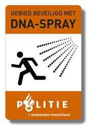 Ik fietste gisteren langs dit bord in A’dam Oud Zuid en dacht dat het om kunst of humor ging. Maar het blijkt echt te zijn en niets met Oil of Olaz van doen te hebben. Het idee is dat misdadigers en andere drugsgebruikers met dat spul in hun gezicht worden gespoten zodra ze iets heterdaads doen, en dat er een unieke synthetische DNA-code in zit die oplicht in het donker en dus helpt tegen inbraakpreventie. Of zo.
