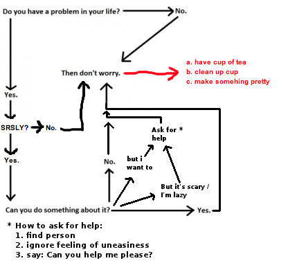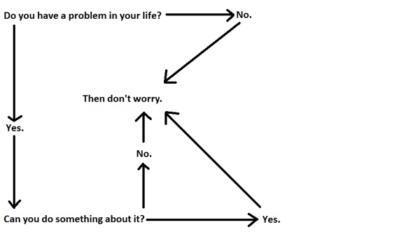Dit schema gaat gevoeglijk voorbij aan de modules “Er best iets aan willen doen maar niet weten wat” en “Best weten wat eraan gedaan moet worden maar te bang/lui zijn om het te doen”, maar verder behelst het wel een goede levensrichtlijn: