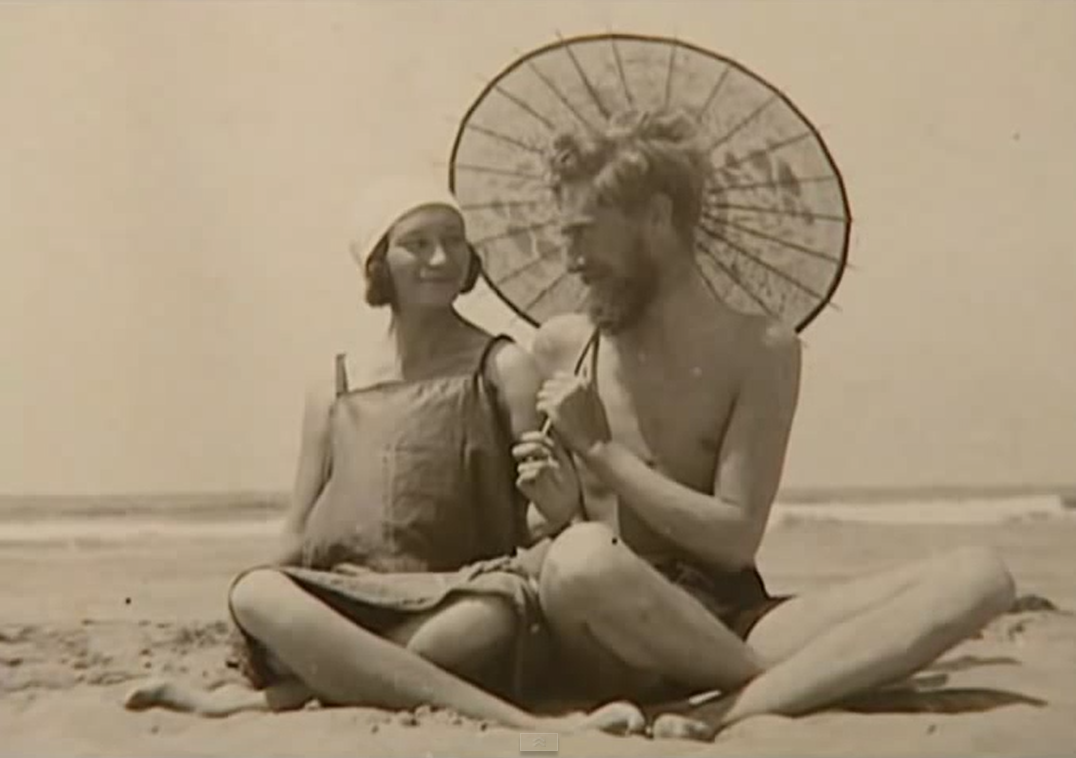 Update 1-3-2015: Heel goed, heel goed. Het is inderdaad Maurits ‘Mauk’ Cornelis Escher, met zijn vriendin Jetta. (Mede-Leeuwardster Mata Hari was al een paar jaar dood, vandaar dat dit haar niet is.) Het plaatje komt langs in deze documentaire, die het aanraden waard is als u in ’s mans persoonlijke leven geïnteresseerd bent, en hem daadwerkelijk eens wilt horen praten: