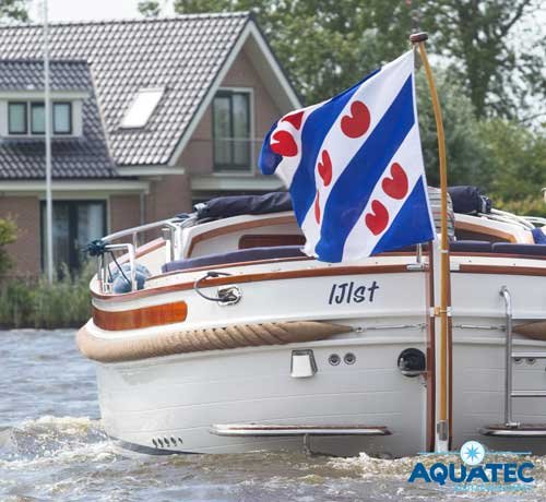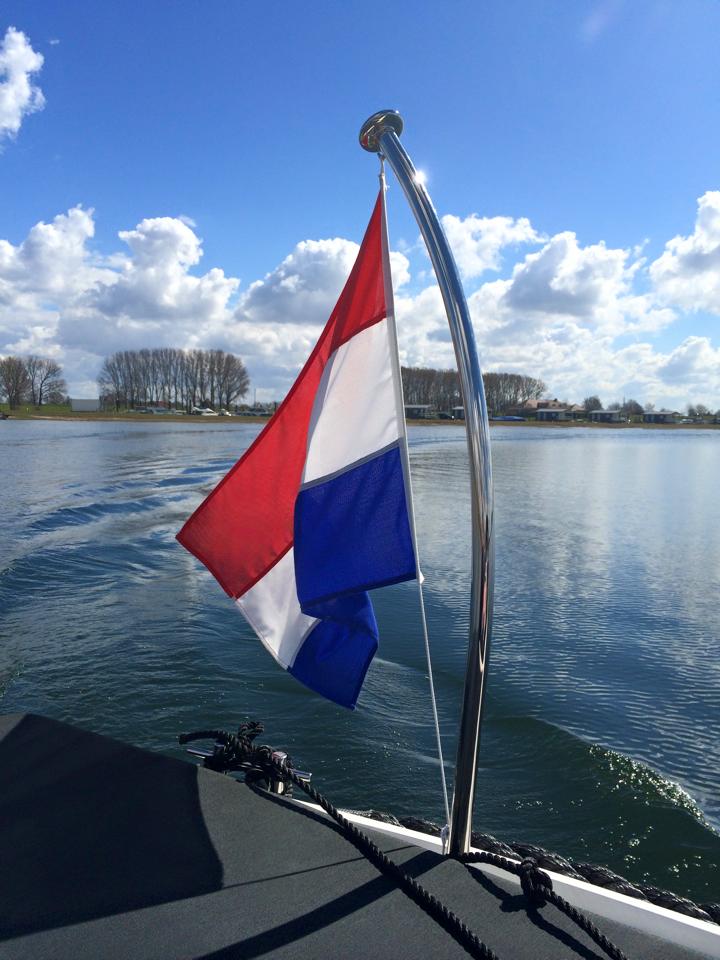 Kromme vlaggestokjes zijn niet te koop. Bootbezitters beginnen allemaal met een rechte vlaggestok. Hoe langer je vaart en hoe sneller je boot is , des te krommer gaat je vlaggestokje staan.