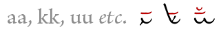 Dan is er nog een horizontale verdubbelingsstreep die mag worden gebruikt in plaats van tweemaal dezelfde letter. Eventuele andere tekentjes komen daar weer boven: