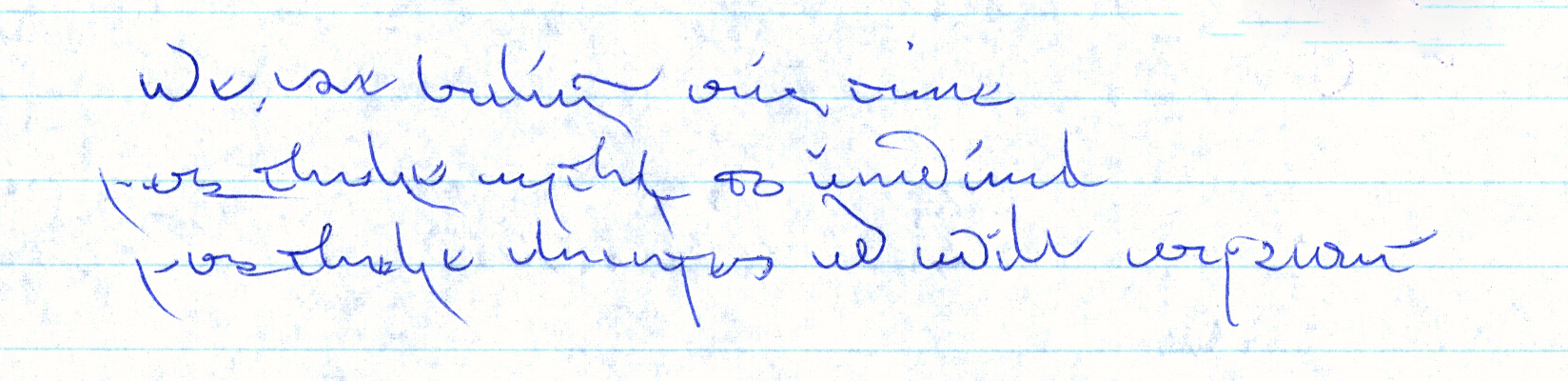 letters extreem plat op hun rug worden gelegd, of veel meer recht overeind; de boogjes mogen rond of puntig of gradaties daartussenin, en ook in kalligrafische of expres slordige modus doet het schrift het goed. Mocht u een poging willen wagen de hier in het rond geplaatste voorbeelden te ontcijferen (klik op de plaatjes voor grote versies – ik sta niet in voor coherentie of foutloosheid) dan volgt hieronder de huidige staat van het schrift.