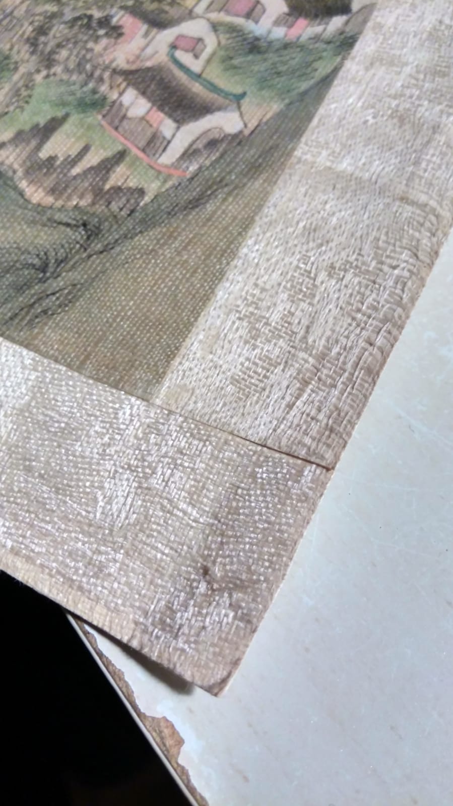 * Of beter: een flinterdun zijdeachtig weefsel dat op het papier is geplakt.