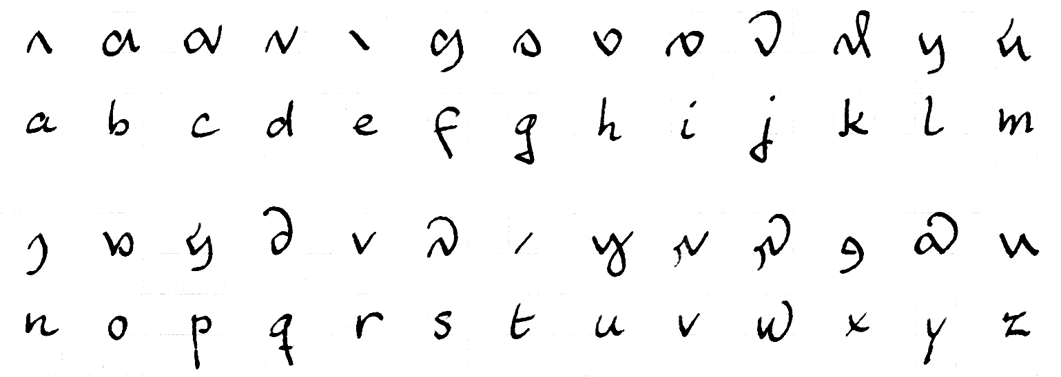 * Is dit een beetje geschikte term voor wat dit is? Ik heb geheimschrift altijd onpassend gevonden, omdat het me hoegenaamd nauwelijks om geheimheid te doen is maar veeleer om het bouwen van een fraai en kloppend systeem. Verzonnen schrift of geconstrueerd schrift dekken op zich de lading maar rollen weinig soepel van de tong. Neografie zou een andere optie zijn, naar analogie van hoe ze het verschijnsel op reddit noemen (tevens ook conscripts, van constructed scripts, maar conscripts zijn al beroepssoldaten dus dat vind ik ook niet bijster sterk.) Kunstschrift draagt misschien weer de dreigende pretentie van kunstzinnigheid, wat ik liever aan de beschouwer laat. Op zich is schrift natuurlijk op zichzelf al voldoende, maar een tikje vaag. Wat dunkt u?