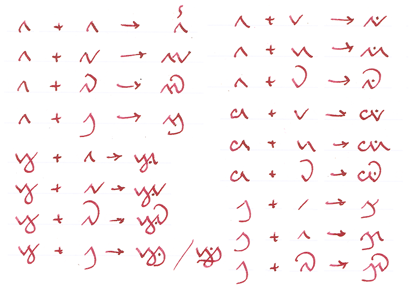 Een nieuw kunstschrift* in wording. Qua basis opgebouwd uit diagonale lijnen, zoals deze maar met vriendelijker rondingen. Letters worden in elkaar geschoven c.q. gesmolten naargelang aanpalendheid. Nog geen naam (suggesties welkom); naders te zijner tijd.