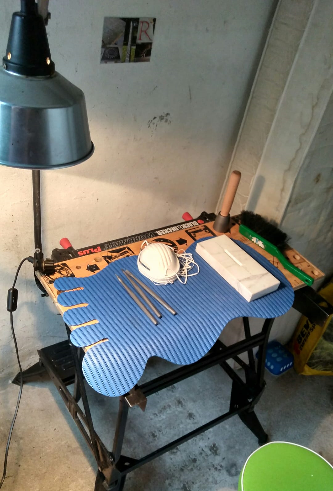 Dus, ik huiswaarts met een rugzak vol begeesterdheid en een buitengewoon knullig bebikt stukje marmer (en de constatering dat ik mijn aantekeningenblok bij de workshop had laten liggen met de eerste aanzetten van mijn zojuist bedachte Aprilschrift erin, maar dat is dankzij Henk allemaal weer goed gekomen – hierover misschien een latere keer want daar hangt nog een leuk muizenstaartje aan). (Update: lees het muizenstaartje hier.)