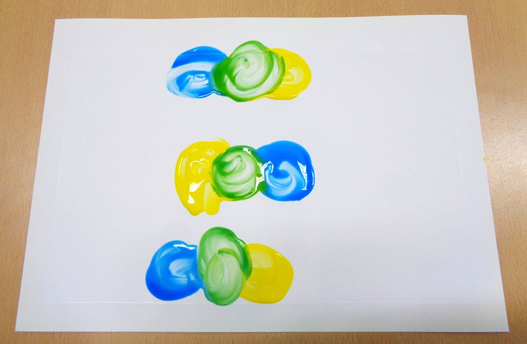 Antwoord 1 zal natuurlijk geen kleuter verbazen. De kleuren waar we in onze jonge jaren mee leren kliederen komen doorgaans in de vorm van verf/inkt/wasco, en daar geven geel en blauw geheel naar verwachting groen.