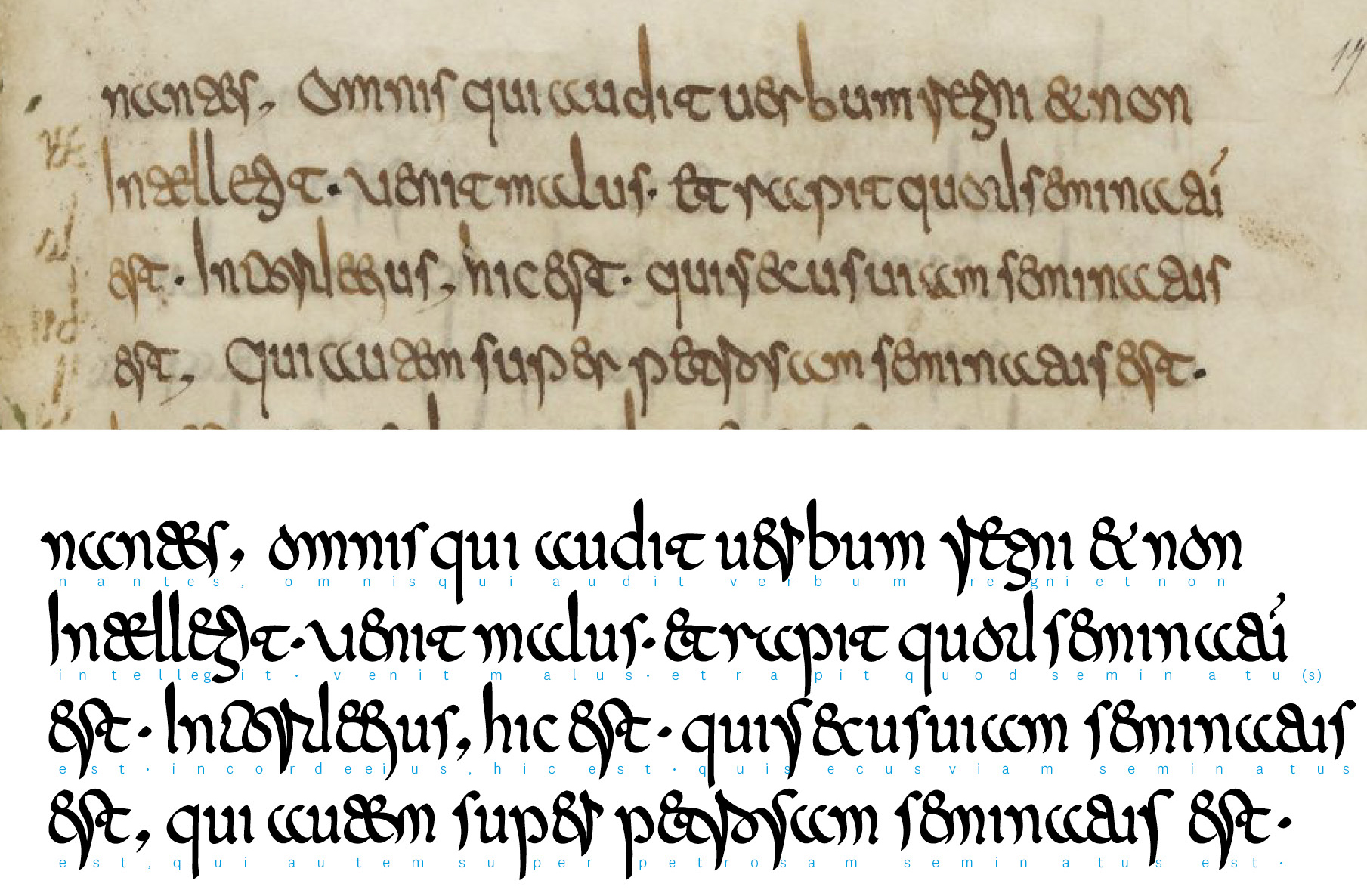 Stiekem heb ik trouwens dikke fascinaties voor hoe sommige talen & schriften op het randje van asemie balanceren (zie: Grasschrift) en er voor ingewijden toch in slagen betekenisdragend te blijven (zie: Deens). En in sommige Merovingische kloosters hadden ze duidelijk minder last van aardbevingen dan elders, gezien dat ze bijvoorbeeld in Luxeuil naar verhouding een soortement van leesbaar schreven: