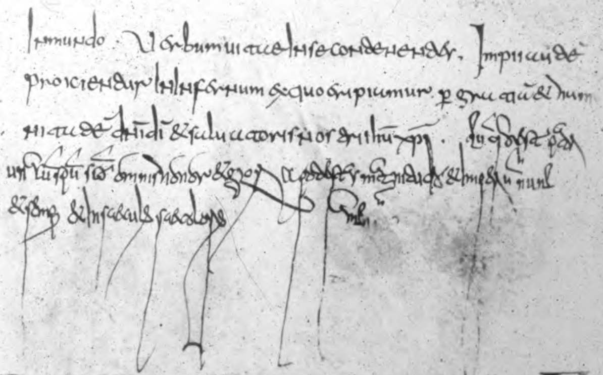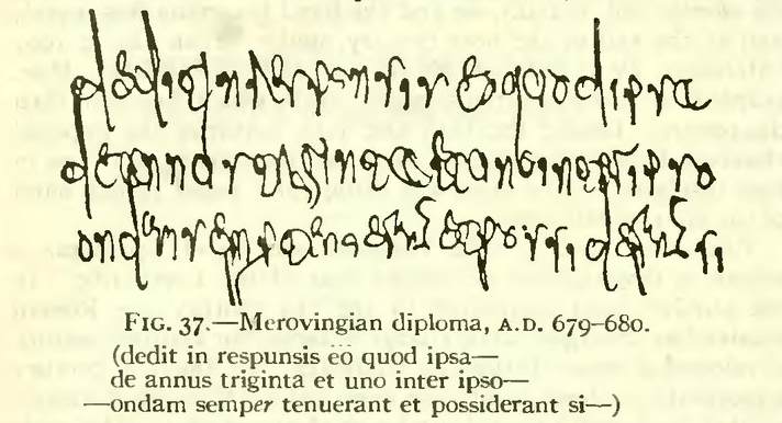 Je knijpt toch je handen ineen dat Grote Karel indertijd zijn fijne minuskel erdoor heeft gedrukt zeg. Moet je nou toch kijken hoe mensen voor die tijd schreven. Aanschouw de cardiografische kwaliteiten van het Merovingische schrift: