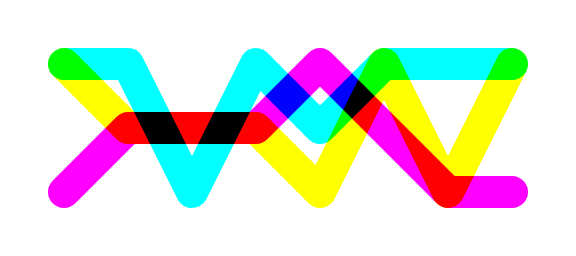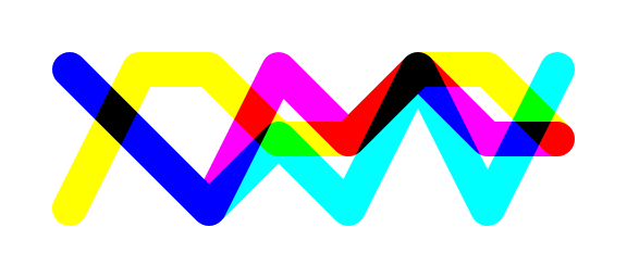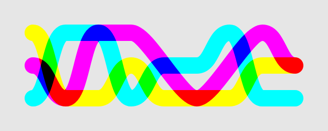 Weljaaa! En dan in één moeite door bouwt Victor dan ook maar eventjes een cmykwavegenerator alsof het niks is. Noujaaa. Hoe is het mogelijk, dus je kunt in JavaScript gewoon definiëren dat die lijnen op de juiste manier kleurmengen als ze over elkaar heen lopen. Wat cool.