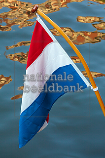 Dat ik namelijk geregeld (als het niet van dit soort onmeunig treurweer is tenminste) langs water zit waar men aan pleziervaart doet, en dat vrijwel alle bootjes die langsdrijven hun achtervlag aan een kromme stok hebben hangen: