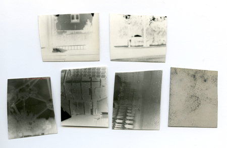 En zo was ik enkele kwartieren later in het bezit van zes echte eigenmaakte pinhole-negatieven. Ondanks twee jaar wachten en minstens tien factoren van onzekerheid waren ze gewoon gelukt! Zelden had een mens zo’n kneukel om een paar stukjes indistinct bevlekt papier.