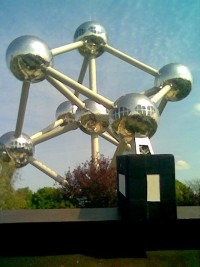 En aldus toog ik naar Brussel, waar ik het doosje telkens met plakgum op een zich aandienende stevige ondergrond monteerde en op taferelen van uiteenlopende bezienswaardigheid richtte. Vijfmaal heb ik dit gedaan, want om de negatieven (stukjes fotopapier van ongeveer 4 cm breed) te verwisselen moet men in het aardedonker zijn (lees: de douche van het appartement), dus je kunt per stadswandeling maar één foto maken.