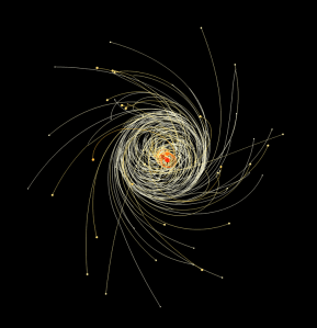Weer een leuk zwaartekrachtsimulatieprogrammaatje gevonden. Een beetje vergelijkbaar met het vorige, maar dan desgewenst met veel meer planeetjes tegelijk, hetgeen bijzonder inzichtelijk is om te zien hoe uit een chaotische stofwolk een stabiel planetenstelsel ontstaat, met manen en al als u geluk hebt. Klik helemaal linksonder op ‘Generate proto disk’ en schouw toe!