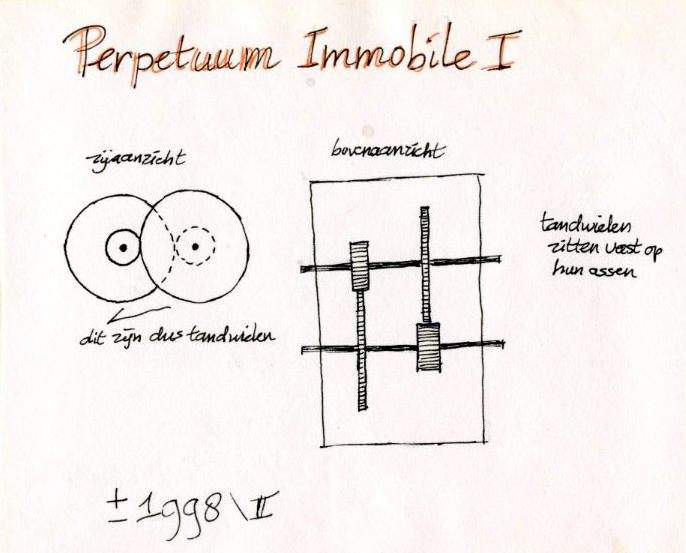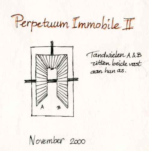 Uiteraard trapt elk knutselend jongetje vroeg of laat een keer in deze val, en ik moet zeggen dat ik ook niet direct zie waaròm dit apparaat niet kan werken,* maar het helpt wel als iemand je op een gegeven moment uit de droom helpt dat een perpetuum mobile per definitie een natuurkundige onmogelijkheid is.