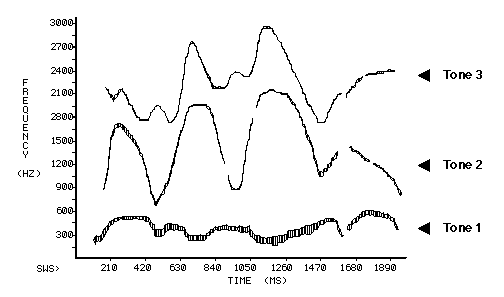 En zo heeft elke klinker zijn unieke combinatie van formanten. Medeklinkers werken akoestisch net even een tikje anders, maar het idee is vergelijkbaar. Op deze manier kun je dus met uiterst eenvoudige middelen menselijke spraak imiteren. En dat is precies wat ze in de Haskins Laboratories aan de universiteit van Yale hebben gedaan: simpelweg de eerste drie formanten combineren, en het resultaat is dan bijvoorbeeld het volgende: