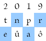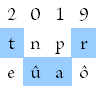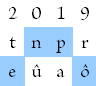 3. Men leze de gekozen letters van links naar rechts als een woord. Dus 2019 wordt dan bijvoorbeeld tûpô, enar, eûpo, tûarof enpô. U mag zelf uw favoriet kiezen: