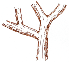 Om woorden te schrijven worden de letterboompjes samengevoegd tot grotere bomen, van beneden naar boven. Elk letterboompje heeft vier takken, waaraan de ‘stammen’ (de stippellijnen) van verdere letterboompjes kunnen worden gekoppeld. De eerste letter van een woord komt onderaan; letters die erna komen worden aan de takken van die eerste letter gekoppeld; nog verdere letters komen weer aan de takken van die letters, enzovoort. Zo ontstaat er een boom die steeds complexer wordt naar gelang de lengte van het woord.