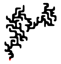 Een schrift waarbij boodschappen een soort doolhofachtige koraalstructuren vormen: