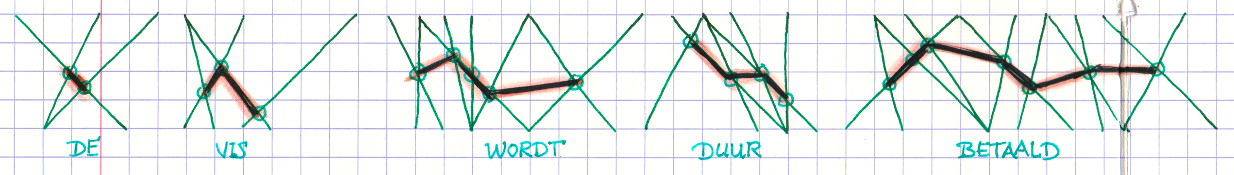 En met die lijnen maak je dus kruisingen, die voor de letters van het alfabet staan.