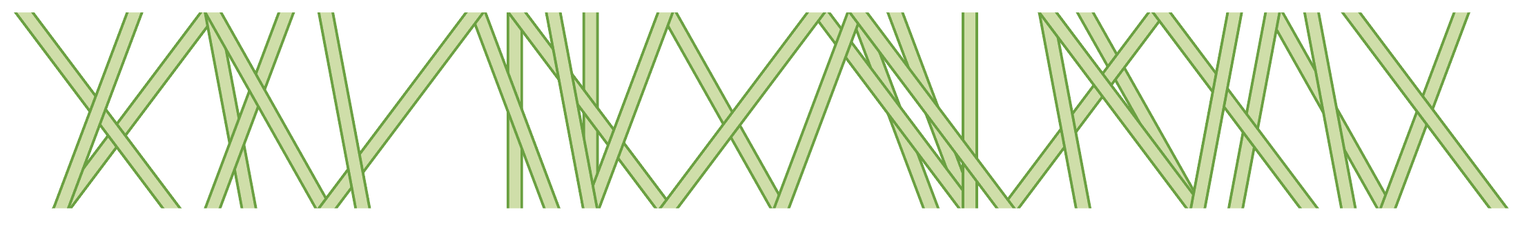 Goed, tot dusver hoe individuele letters werken. Maar de leukigheid van Kriskras komt pas uit de mouw bij het combineren van letters tot woorden. Daarbij mogen namelijk naburige lijnen die dezelfde schuinte hebben met elkaar samenvloeien, met als gevolg dat je regelmatig meer dan één kruising op dezelfde lijn krijgt.