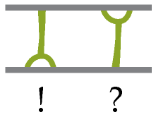 Het uitroepteken bestaat uit een boogje tegen de onderlijn en een stokje tegen de bovenlijn; het vraagteken is precies andersom. In principe mag het stokje net als bij de e alle kanten op wapperen die in de context maar het mooiste passen, zolang u daarbij maar wel oppast dat de vorm niet teveel op een a, d, o, r, u of y gaat lijken.