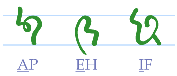 - De h leent zijn zigzagvorm uit aan de linkerbuurletter: