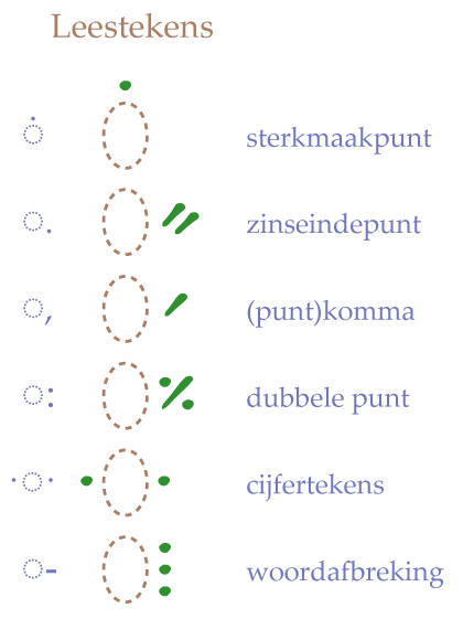 Zoals vaker heb ik wat leestekens betreft enigszins achterlopende inspiratie. Voorlopig heb ik het volgende setje (zie verderop over de cijfertekens en sterkmaakpunt):