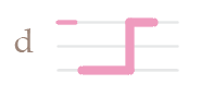 - Ligt de voorgaande trede daarentegen op de middellijn, dan krijgt de d dezelfde vorm als daarnet, maar komt hij in zijn geheel één lijn hoger te liggen: