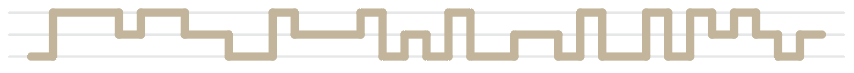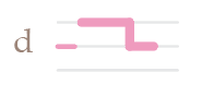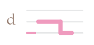 - Op welke hoogte de treden van een letter komen te liggen hangt dus af van de hoogte waarop de voorgaande trede zich bevindt. Als de voorgaande trede (hieronder weergegeven met het smalle lijntje links) bijvoorbeeld op de onderlijn ligt, dan ziet een d (code +2-1) er zo uit: