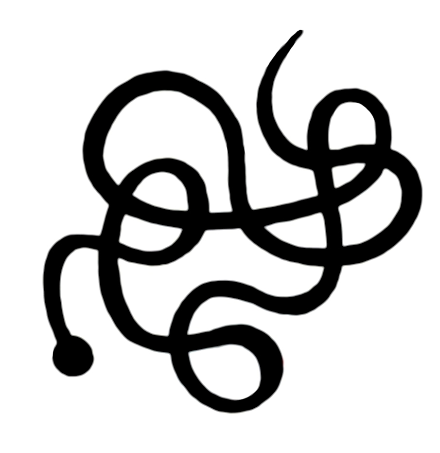 Wel, nu is het principe verder duidelijk. Men zoeke de letters op in het alfbabet, schrijve ze achter elkaar, en vlechte de lijnen naar eigen esthetisch inzicht dooreen. Onze ‘asbak’ wordt dan: